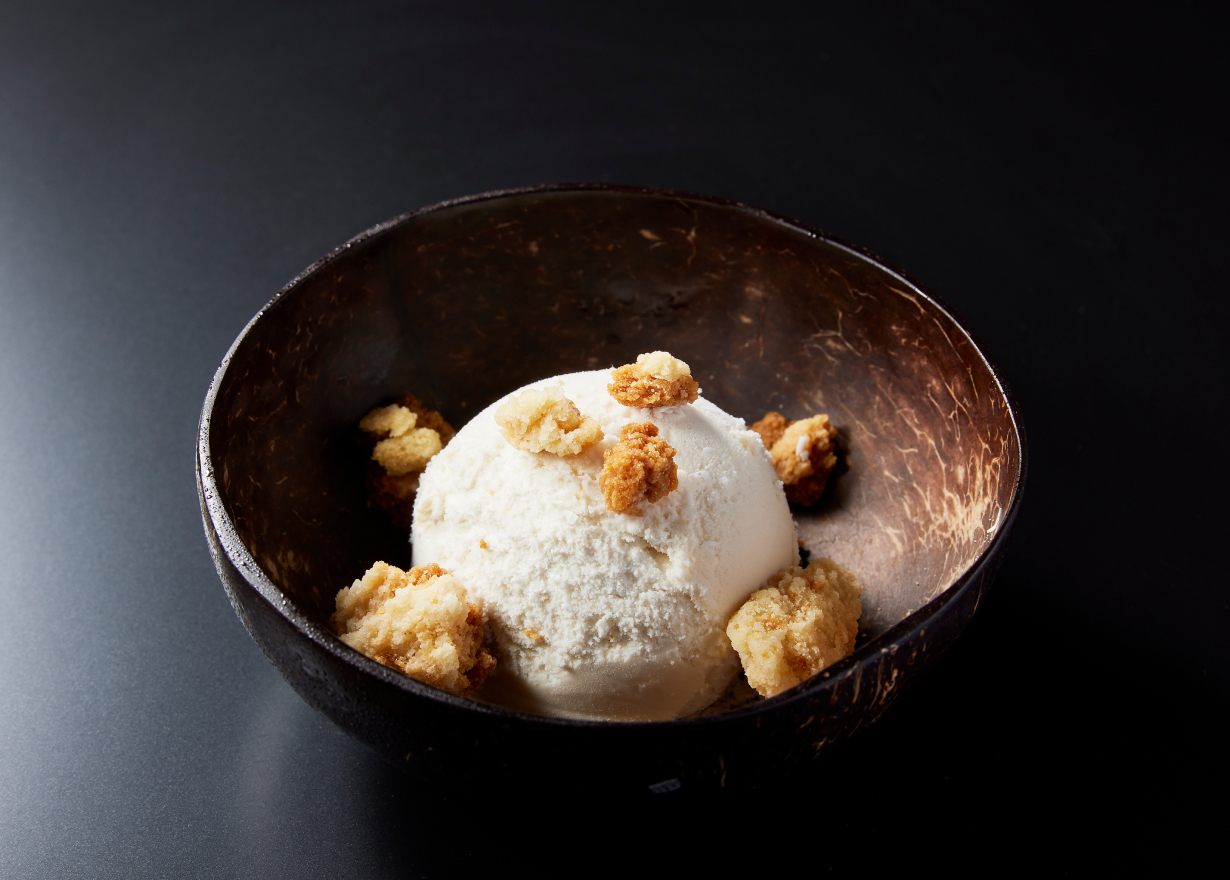 口に入れた瞬間、ココナッツの香りがふわっと広がる自家製ココナッツアイスは、お口直しにもぴったり。