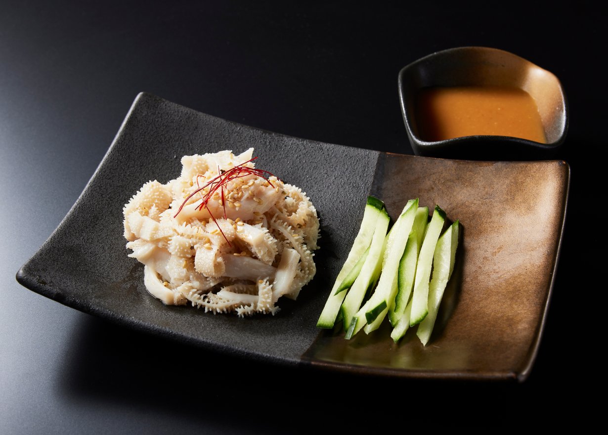 ザラリとした舌触りと歯応えのあるセンマイは箸休めにもおすすめです。炙りユッケや牛ハツ刺しも人気の逸品です。